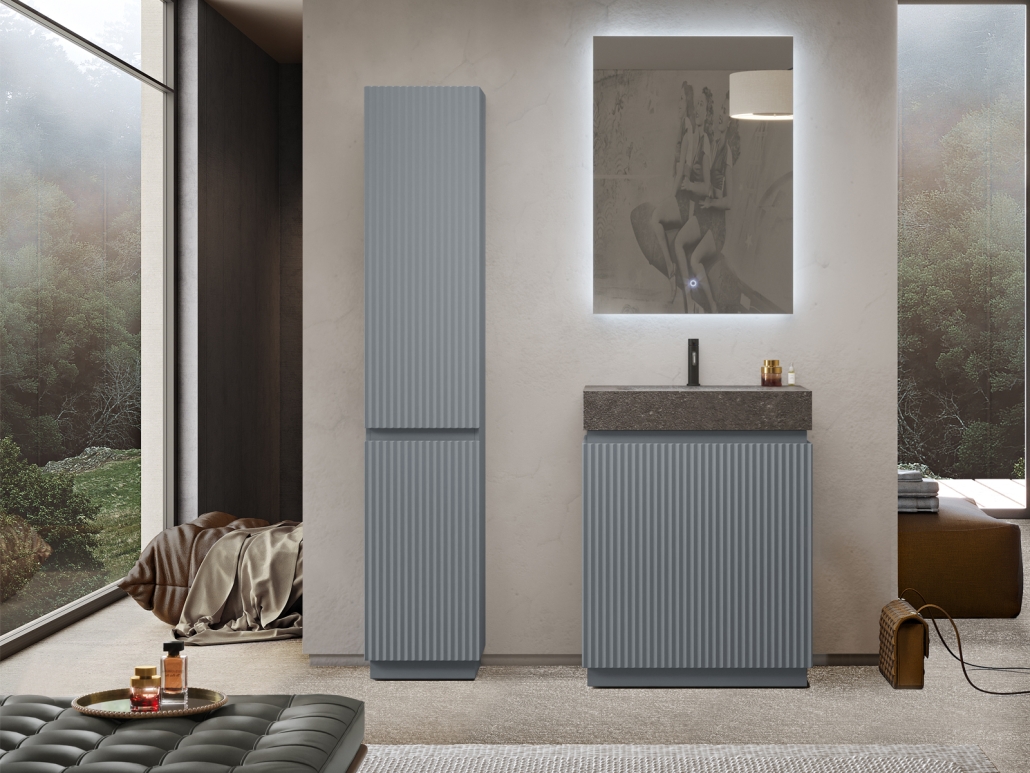 Pura, una Collezione pensata per rispondere alle esigenze dell’abitare contemporaneo, dove design e praticità si incontrano in perfetto equilibrio. Pura è autenticità e funzionalità: linee pulite, materiali tattili e il dettaglio plissé triangolare uniscono bellezza e ritmo visivo, tra modernità e funzionalità. Disponibile in molteplici finiture opache e legno, la Collezione Pura offre cassettoni da terra ampi e contenitivi, con guida slim soft close e cassetto interno con divisori in vetro fumé. Sia singola che doppia, Pura permette l’installazione di lavabi integrati in solid surface o HPL, oppure da appoggio in ceramica, bianca o colorata.