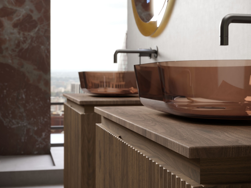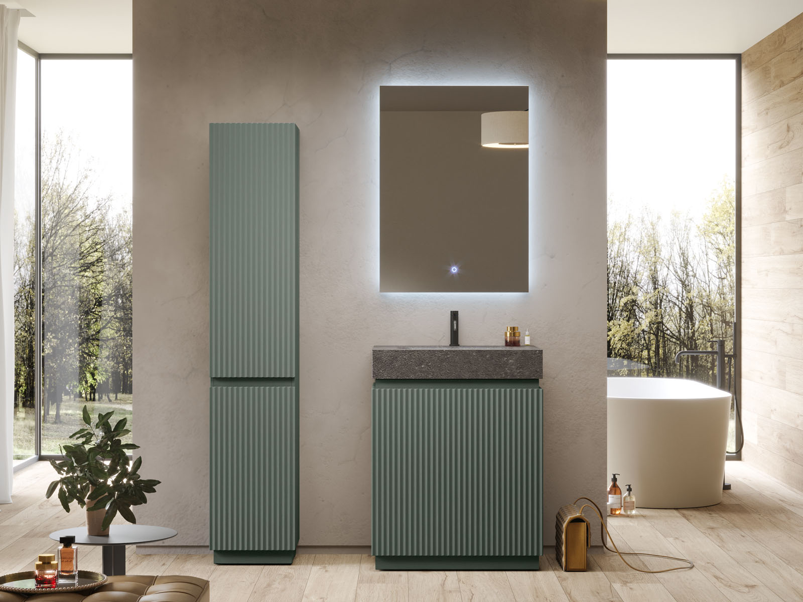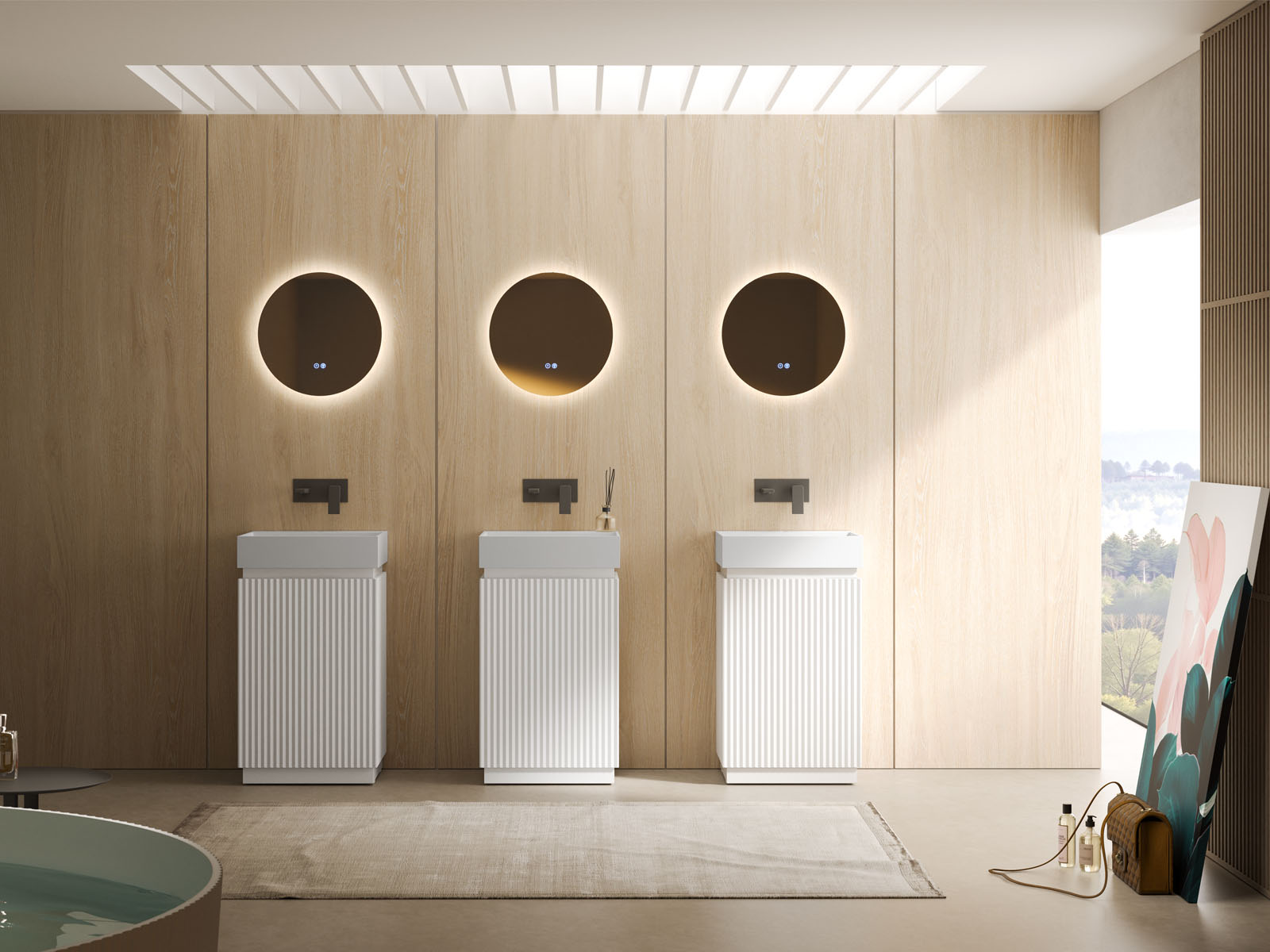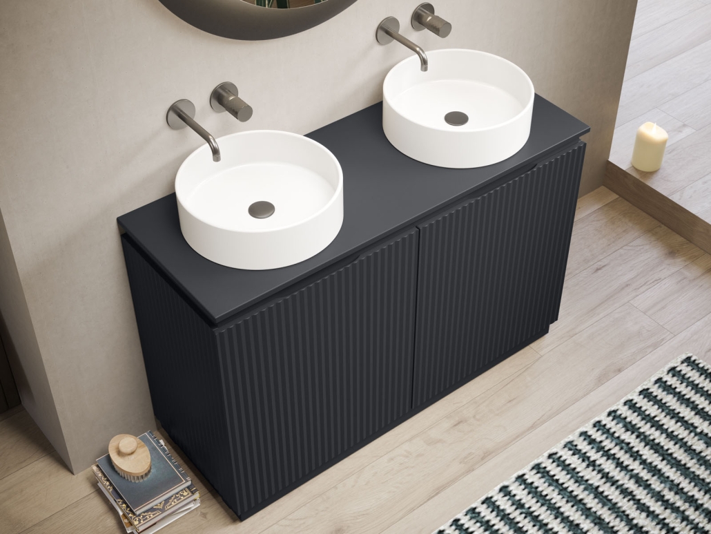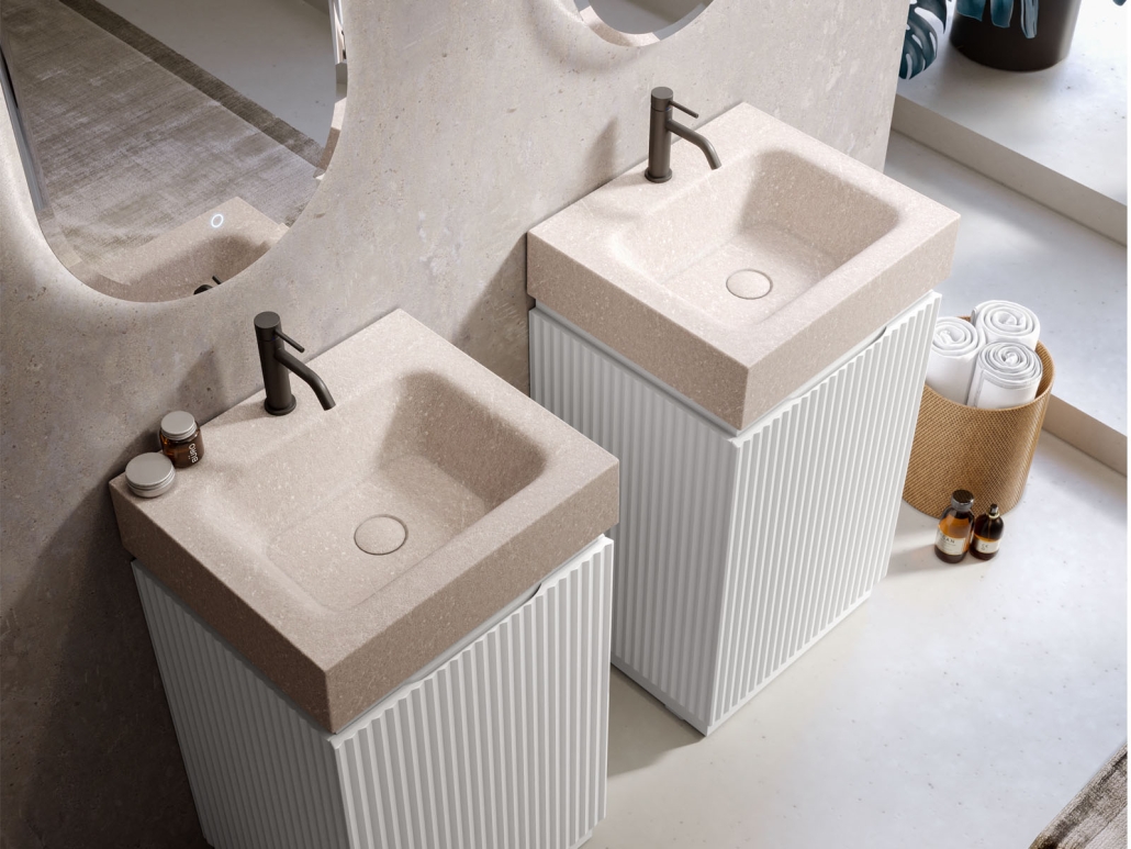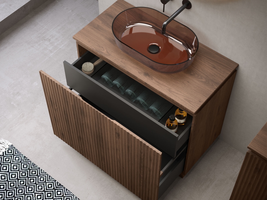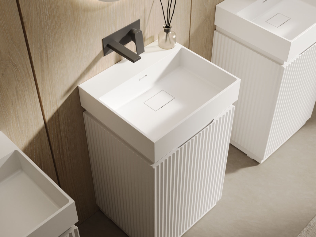 Pura, eine Kollektion, die den Bedürfnissen des modernen Wohnens gerecht wird und Design und Funktionalität perfekt vereint.Pura verkörpert Authentizität und Funktionalität: Klare Linien, haptische Materialien und das geriffelte Detail verbinden Schönheit und visuellen Rhythmus und schaffen so ein Gleichgewicht zwischen Modernität und Funktionalität.Die Pura-Kollektion ist in verschiedenen Matt- und Holzausführungen erhältlich und bietet geräumige Standschubladen mit schmalen Soft-Close Führungen sowie Innenschubladen mit schwarz satinierten Glasfächer für das ordentliche verstauen der Badutensilien.Ob als Einzel- oder Doppelausführung – Pura ermöglicht den Einbau integrierter Waschbecken aus Mineralguss oder HPL alsauch Aufsatzkeramikbecken weiß oder farbiger Keramik.